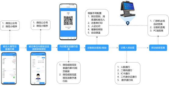 訪客系統(tǒng)也支持邀約訪客來訪,無需訪客填寫信息,由邀約人填寫訪客信息并通過微信或短信通知訪客,同時(shí)生成通行二維碼,訪客到訪可刷臉或刷二維碼通行。