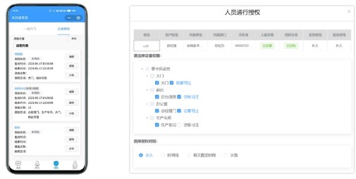 管理員可通過微信、H5移動(dòng)端、Web端設(shè)置外來人員的通行權(quán)限,訪客審批后,相關(guān)權(quán)限自動(dòng)下發(fā)到聯(lián)動(dòng)的門禁控制器上,支持通行權(quán)限的修改,同時(shí)支持添加黑白人員名單。