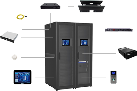 采用高度集成—體化設計理念:即機柜既是機房,機柜內(nèi)部高度集成所需設備:UPS不間斷電源系統(tǒng)、空調(diào)系統(tǒng)、智能配電系統(tǒng)、動環(huán)監(jiān)控系統(tǒng)、門禁系統(tǒng)、氣體消防、蓄電池等全部基礎設施。全模塊化設計,便于靈活配置和維護。模塊間標準接口,工廠化預制安裝調(diào)試,現(xiàn)場快速部署及維護。單機柜或單排多聯(lián)機柜部署,無需搭建冷熱通道。單機柜容量密度為3-W,UPS 備電時間15 分鐘-4 小時 (可依據(jù)需求配置)。