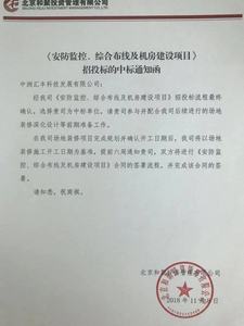 熱烈慶祝中洲匯豐中標(biāo)北京和聚投資管理有限公司2018年招標(biāo)的《安防監(jiān)控、綜合布線及機(jī)房建設(shè)項目》